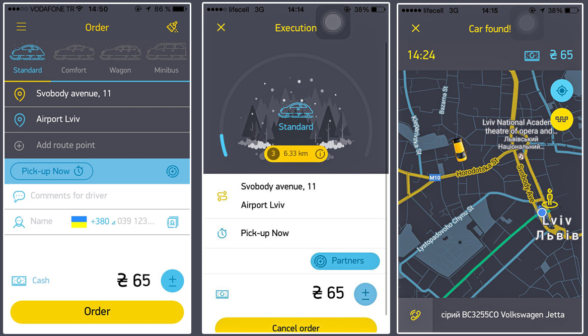 Uklon’u telefonunuza ücretsiz indirebilirsiniz. Ayrıca websitesi aracılığı ile de üye olabilir ve ileri zamanlı bir yolculuk için de istek gönderebilirsiniz. Uklon’a üye olarak taksi çağırırsanız küçük bir indirimden de faydalanıyorsunuz. Mesela yolculuk normalde üyeliksiz 80 UAH iken üye olursanız 75 UAH fiyat veriyor.