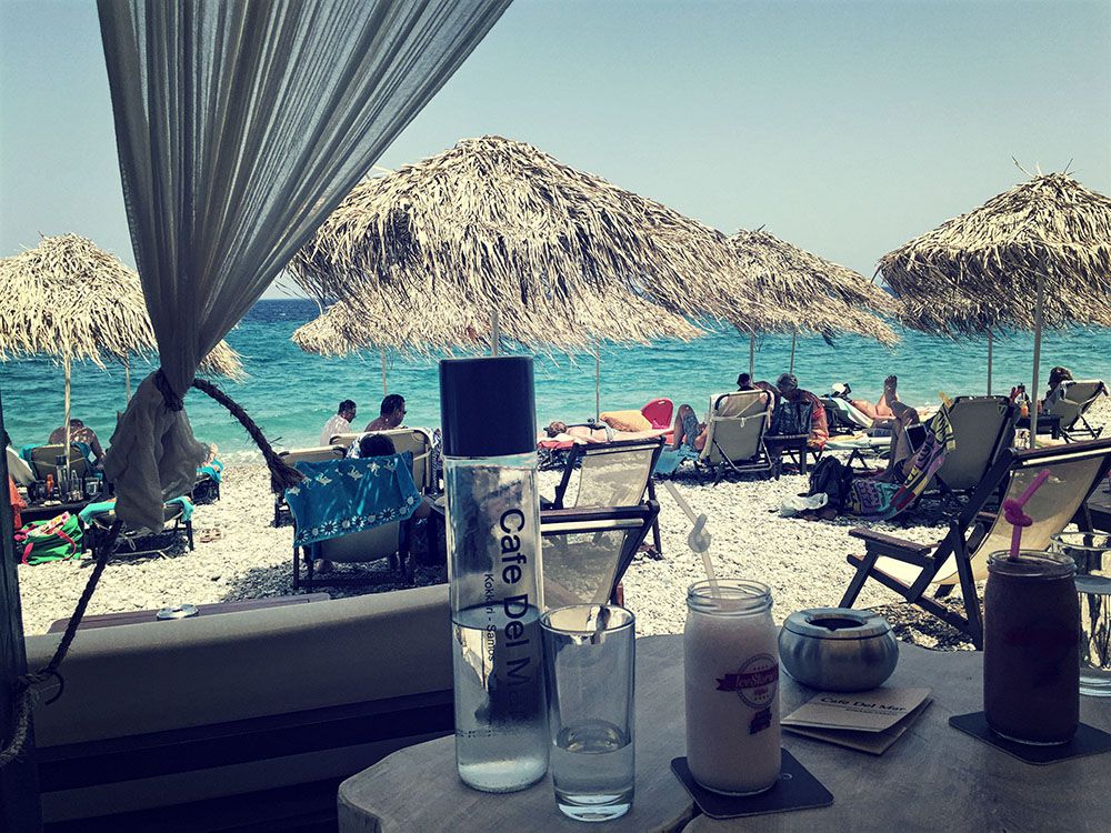 Kokkari plajında bulunan Cafe Del Mar gündüzleri gitmenizi önerdiğim güzel bir cafe. Kokkari’nın plajı zaten çok güzel. Burada birbirinden lezzetli soğuk içeçekleri deneyebilirsiniz. Damla Sakızlı soğuk içeçekleri favorim. Denize girmek istiyorsanızda mekanın şezlong-şemsiyelerini kullanabilir tüm gününüzü burada geçirebilirsiniz.