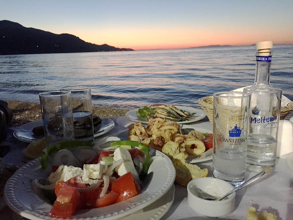 Kokkari’de bulunan Meltemi samimi ve kaliteli ortamıyla akşam yemeği yiyebileceğiniz en iyi mekanların başında geliyor. Güneşin batışıyla birlikte plajda kurulan masalarda uzo-balık siparişi verebilir, lezzetli mezelerle de sofranızı renklendirebilirsiniz. Ayrıca mekanın sahibi de daima orada ve o da diğer çalışanlar gibi servise yardım ediyor. Çok samimi olan Meltemi’ye gün batımından önce gitmenizi öneririm. 2 Kişi için (uzo+salata+2 ana yemek+3meze+su+ekmek) 40 euro ödedik. Ayrıca yemek sonrası ikram olarak mozaik pasta gelmişti.